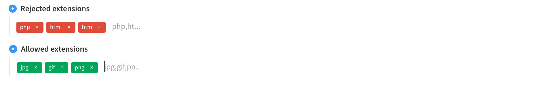 From general settings you can choose if to exclude some file extensions, or if you prefer, to only allow some extensions (and exclude all the others).