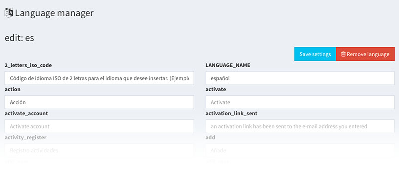 translatable values editable from the language manager (translate_ followed by the translation key)