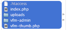 Copy all files contained inside the “VFM” folder to your web space via FTP (put everything in the root if you will use the whole domain as file manager, otherwise create a custom directory and upload everything in it).