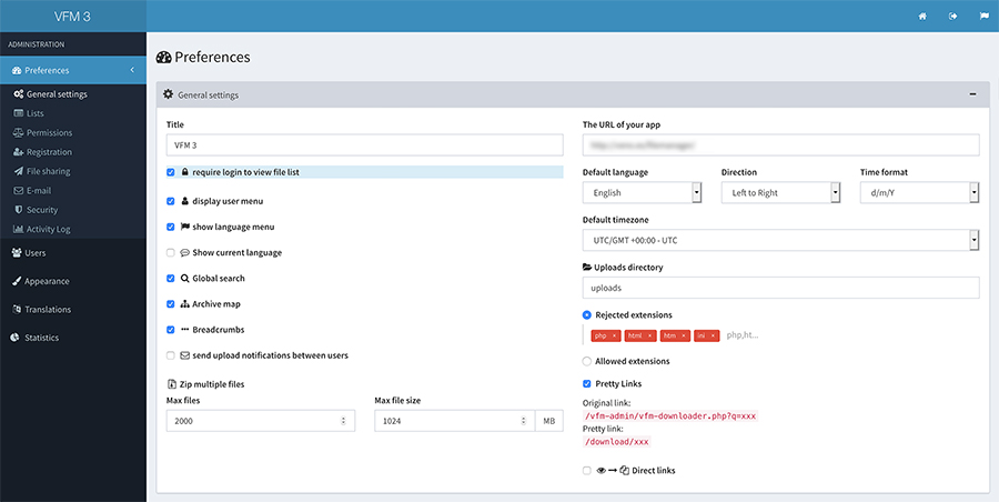 You can adjust these values if your server is more or less performant, changing Max Files and Max File Size under general settings