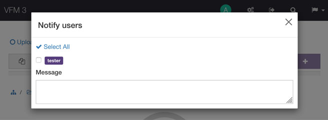If the option Send upload notifications to other users is active, any user with an e-mail address associated will be able to select the other users who can access to the current directory and send them automatic upload notifications