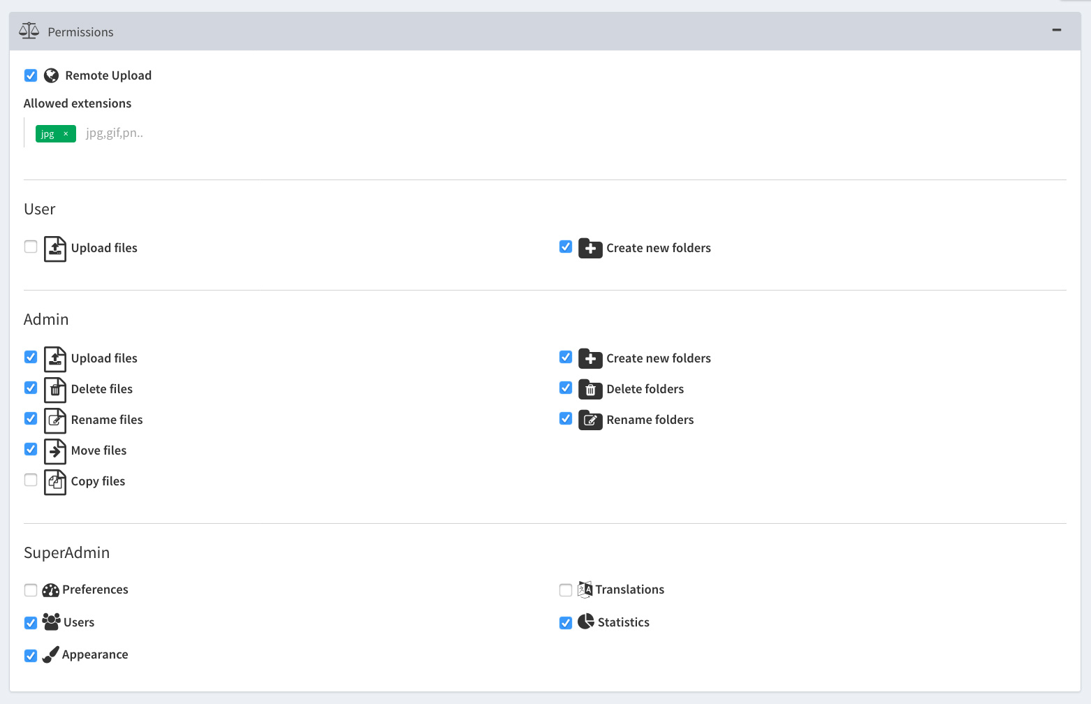 Since version 3.3 the role "User" has 2 optional permissions: Upload Files and Create New Folders.