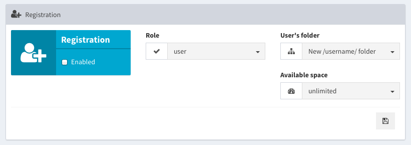 You can choose which role to assign to all new registrations, which folder and how many space.