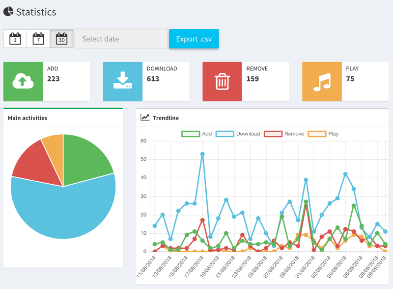 Since version 1.2 there's the possibility to activate a statistics system who stores daily archives of main activities: