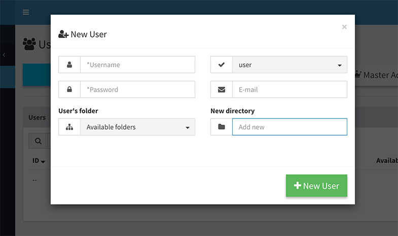 NOTE: Available space considers the space used inside of the assigned folder(s), so if you assign the same folder to more than one user, they will share the same space. (if you assign 100Mb to User01 inside folder01 and 100Mb to User02 inside the same folder, if User01 uploads 100Mb, User02 will have no more space, and viceversa)